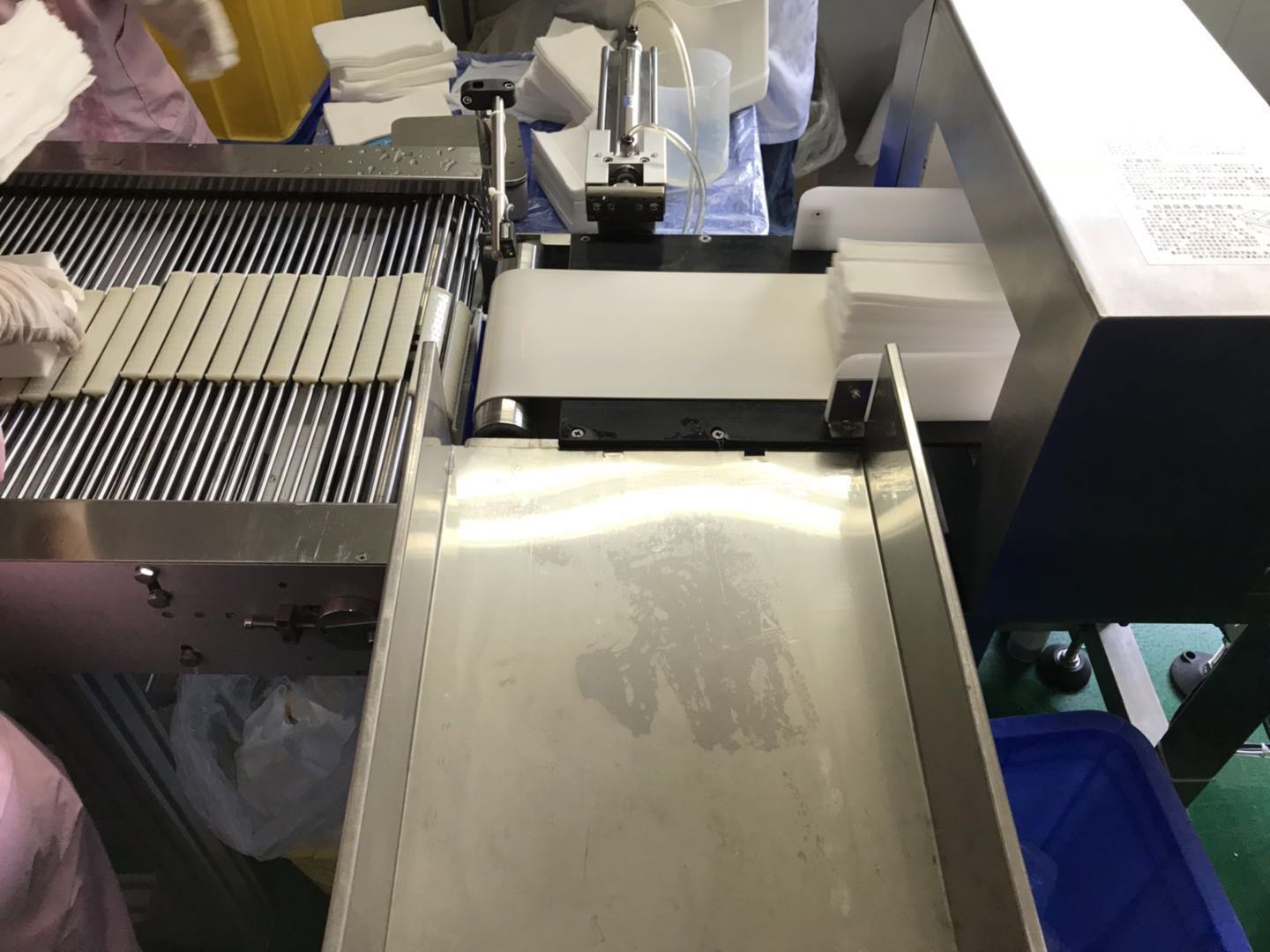 近期江門市水滋潤衛(wèi)生用品有限公司訂購的產(chǎn)品MDCZ-1200自動稱重機金檢重檢一體機